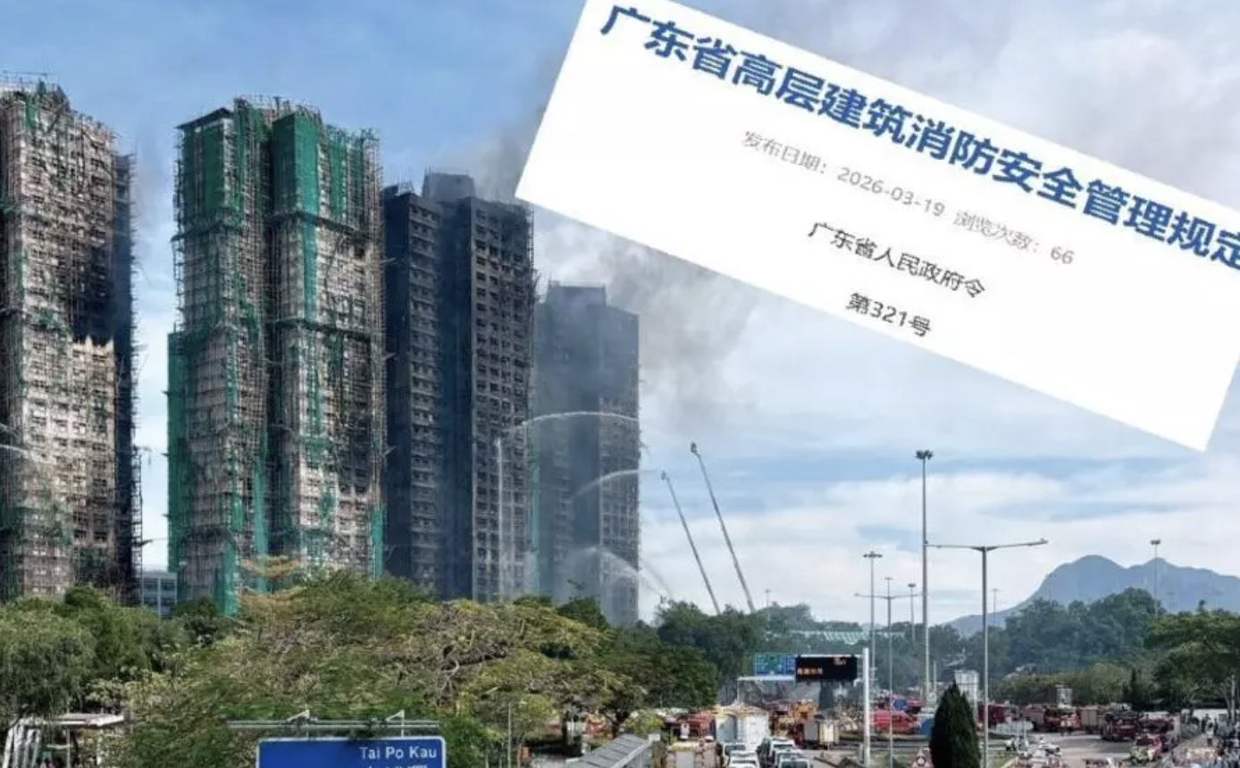 在出台背景中订明「2025年11月26日香港新界大埔区宏福苑高层住宅火灾给高层建筑消防安全敲响了警钟,亟须通过立法强化消防安全管理,守护人民群众生命财产安全和社会大局稳定」的《广东省高层建筑消防安全管理规定》(下称《消防规定》),与当初发出的徵求意见稿,相去甚远,而订明是因应香港火灾而修例的做法亦不常见。