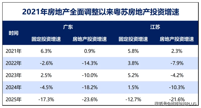 2021年全国房地产全面调整以来,广东的房地产投资增速逐年加深,去年更是达到了-23.6%。江苏虽然也如此,但跌幅明显弱于广东。