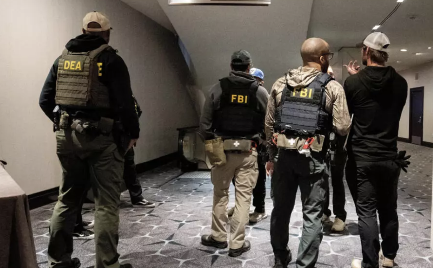 Des agents des forces de l'ordre patrouillent, à la suite d'une fusillade survenue lors du dîner annuel des correspondants de la Maison Blanche, à Washington, le 26 avril 2026. © Reuters/Ken Cedeno