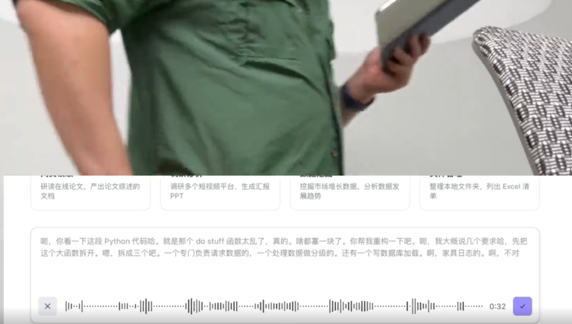 你说一堆口水话,智能结构化转录会帮你整理成结构清晰的可执行指令。