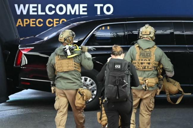 2023年,中国国家主席习近平抵达旧金山。图片来源:JUSTIN SULLIVAN//GETTY IMAGES