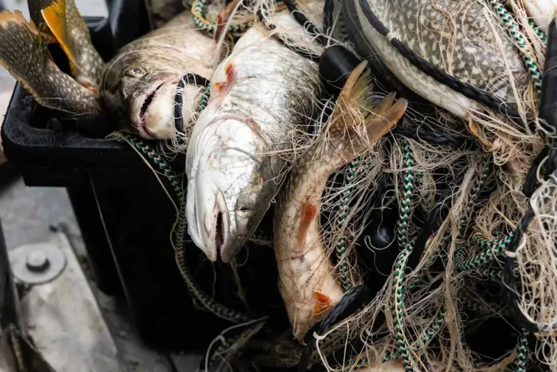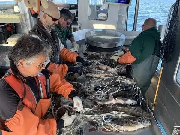 2025年,肖恩团队把渔网从这片深水区拉上来时,发现网里约有近一半的鱼体重严重下降,外观上基本就是一层皮包裹着骨骼。