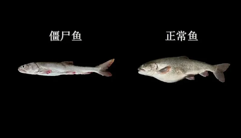 他们在记录中把这些极度消瘦的鱼叫做僵尸鱼。这些鱼并没有死,还在水里呈现出一种机械的姿态游动。