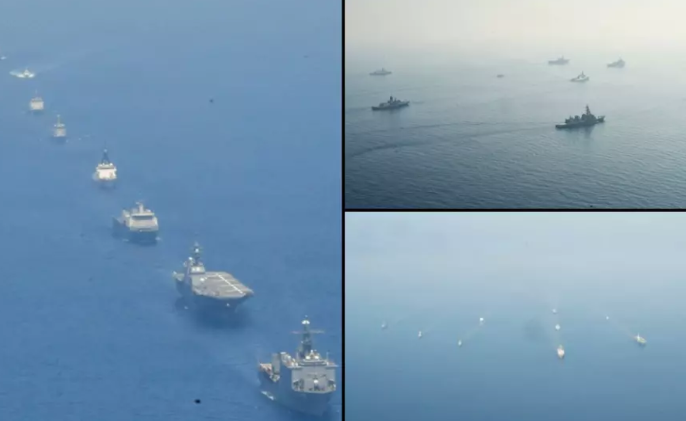 美国第七舰队社交平台2026年4月27日刊出照片说:在“肩并肩”联合演习期间,来自5个国家的11艘军舰在南海共同航行,展现了各方为保障整个印太地区海上安全所作出的集体承诺。2026年4月27日 © US7thFleet