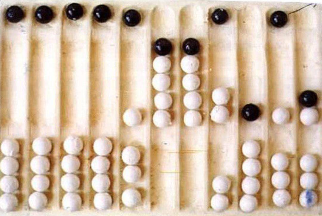 换句话说,距今大约4000多年前,在今天的伊拉克地区,苏美尔人已经开始使用算盘了。虽然他们的算盘与我们中国的算盘形态相似,但它们的功能和结构其实存在很大差异。这是苏美尔人算盘的样子: