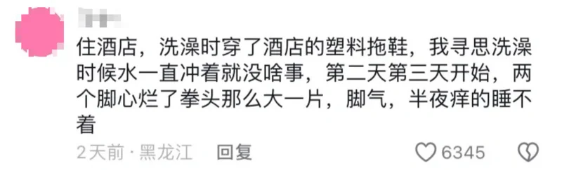 网上有不少人只因穿了酒店公用拖鞋,就莫名染上脚气、足部瘙痒。
