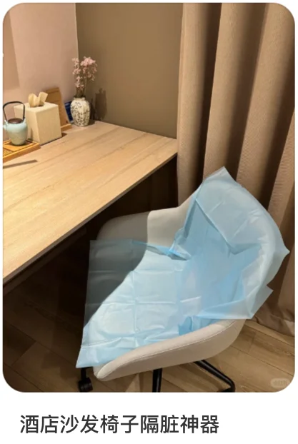 为了玩的安心,有些朋友会格外小心,甚至会带好一次性床上用品、马桶垫、椅子罩,进行全方位「隔脏」,就怕一不小心染上什么脚气、皮炎或者莫名其妙的病菌。
