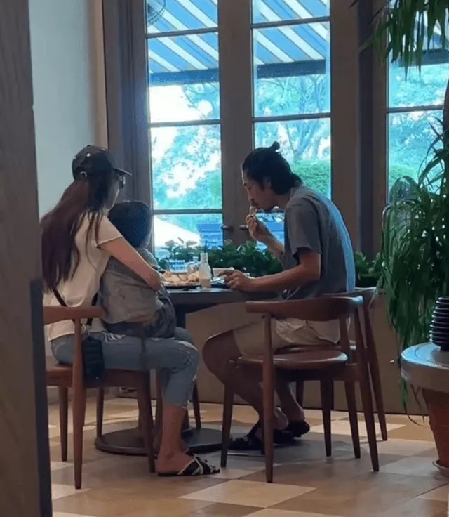 坐在一旁的黑泽良平,穿着一件灰色的短袖T恤和卡其色短裤,头发随意地扎成一个丸子头,整个人也十分放松。正在用餐的他偶尔也会看向林志玲和孩子,画面里没有刻意的互动,却透着一股平淡又安稳的氛围。一家三口就像普通家庭一样,在餐厅里享受着难得的休闲时光,简单的画面却格外治愈。