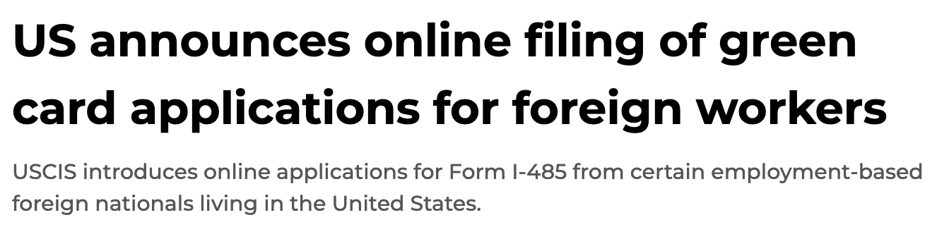 对于正在排队等绿卡、或准备递交身份调整申请的海外华人来说,一项重要变化已经落地。美国公民及移民服务局(USCIS)正式开放部分职业移民类别的I-485表格在线提交功能。对申请人而言,这不仅是流程的简化,更可能直接影响等待体验与效率。