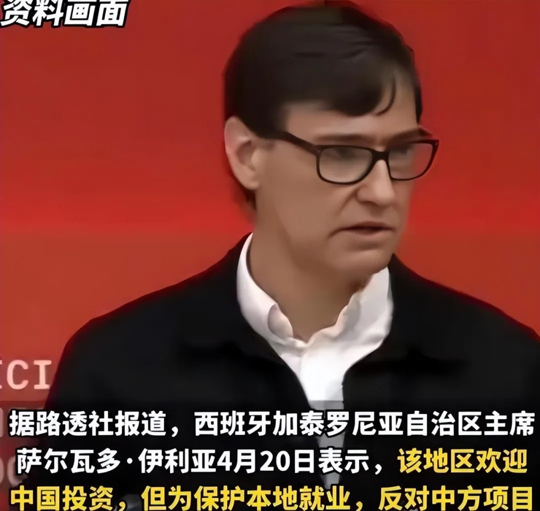 西班牙加泰罗尼亚自治区主席萨尔瓦多·伊利亚在巴塞罗那一场左翼集会期间接受路透社采访,明确表示该地区欢迎中国投资,但为保护本地就业,反对中方项目大量引进中国工人。