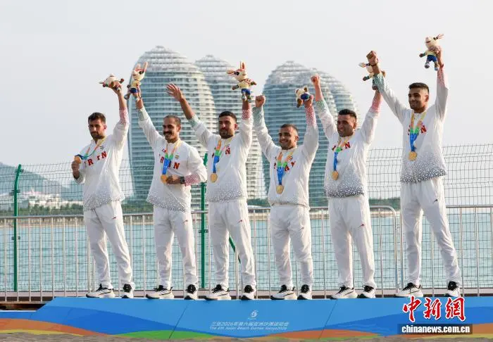 第六届亚洲沙滩运动会(简称“亚沙会”)沙滩卡巴迪比赛27日收官。在当天下午进行的男子沙滩卡巴迪冠军争夺战中,伊朗队以44-31战胜印度队夺冠,伊朗队夺冠后跪地将额头紧贴国旗,表达对祖国敬意。