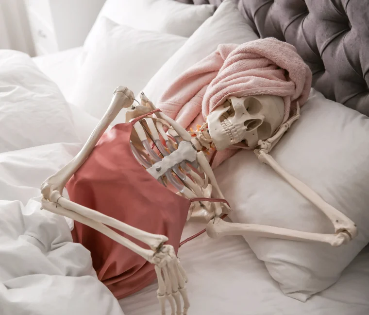中文对标: “烂在床上”、“躺尸/躺平”。
