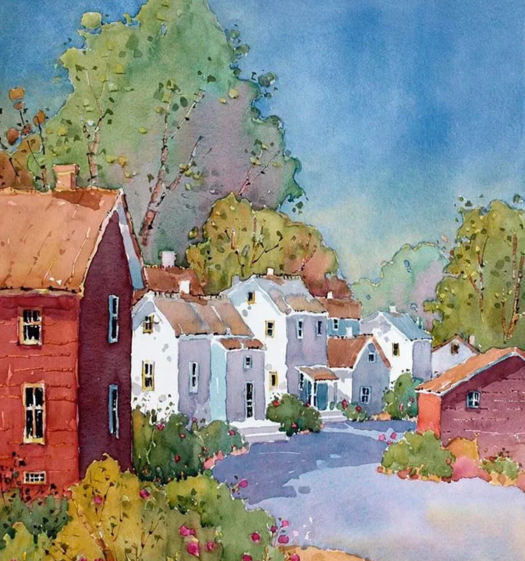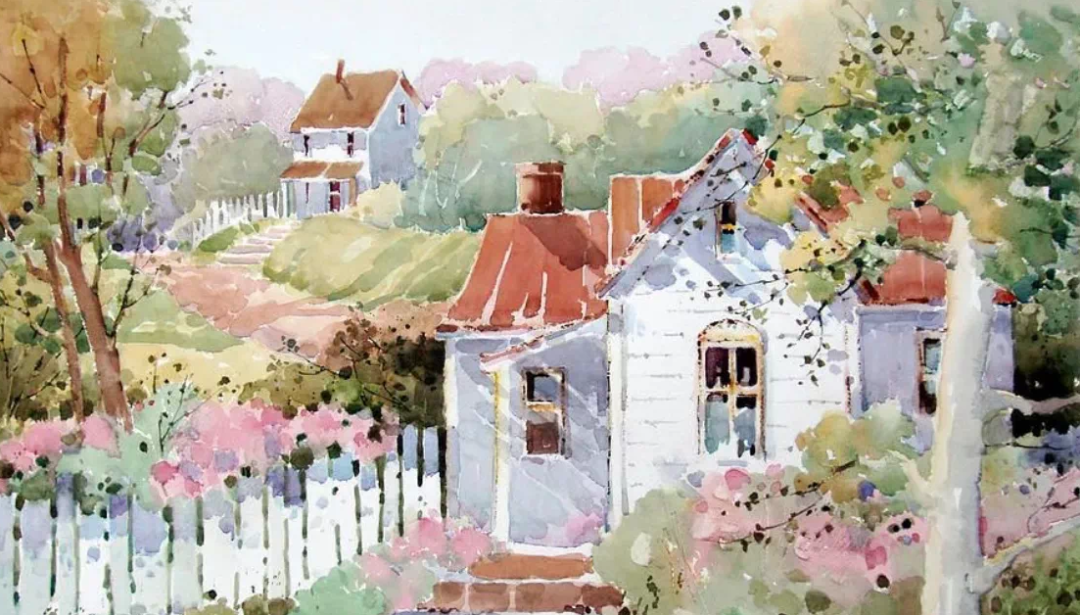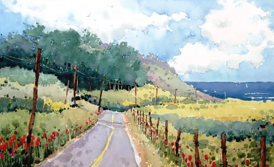 如何自学画水彩画画水彩画的时候一定要注意水彩画的绘画步骤,很多初学者直接用水彩颜料画画是不对的,因为水彩画是水彩颜料和媒介水的结合使用,不加水或者加水量少,直接画画画面不透明,但是如果水份过量颜色也容易降低纯度变得“脏”,变得“灰”,失去了画面的色彩效果。