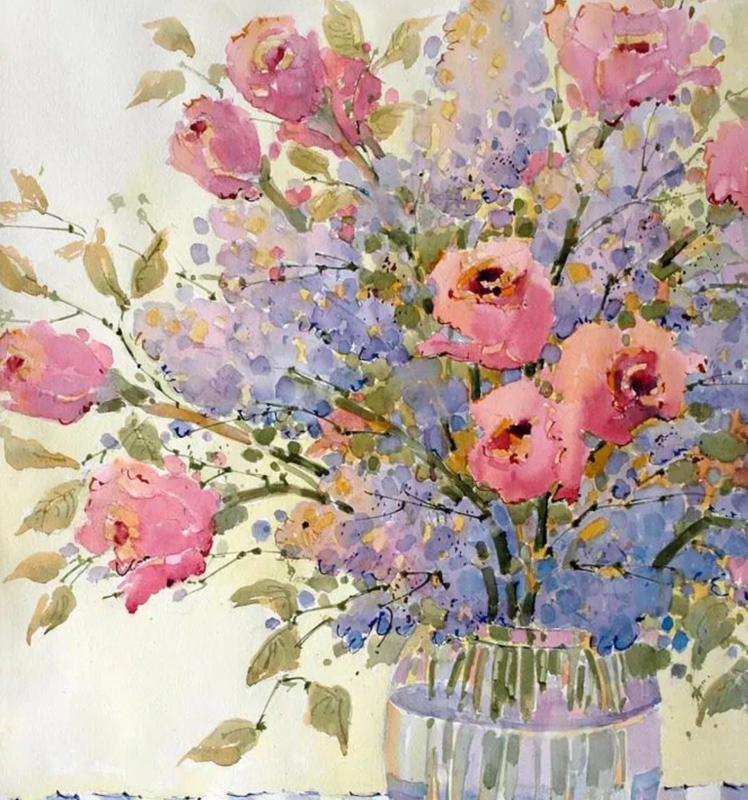 在她的笔下花朵飘香,溪流涌动仿佛每幅作品都有了生命