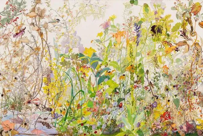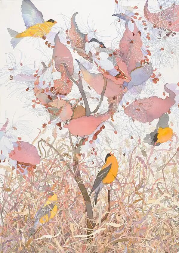 贝克尔的作品以细腻的笔触、丰富的色彩和独特的视角著称。她擅长描绘花卉、植物和鸟类,作品不仅传达了情感和瞬间的美好,更展现了她对细节的极致关注。她的创作过程是逐步构建色彩和形态,最终完成一幅充满活力和惊喜的作品。琼·贝克尔的艺术不仅是一种视觉享受,更是对生命与自然的深刻赞美。