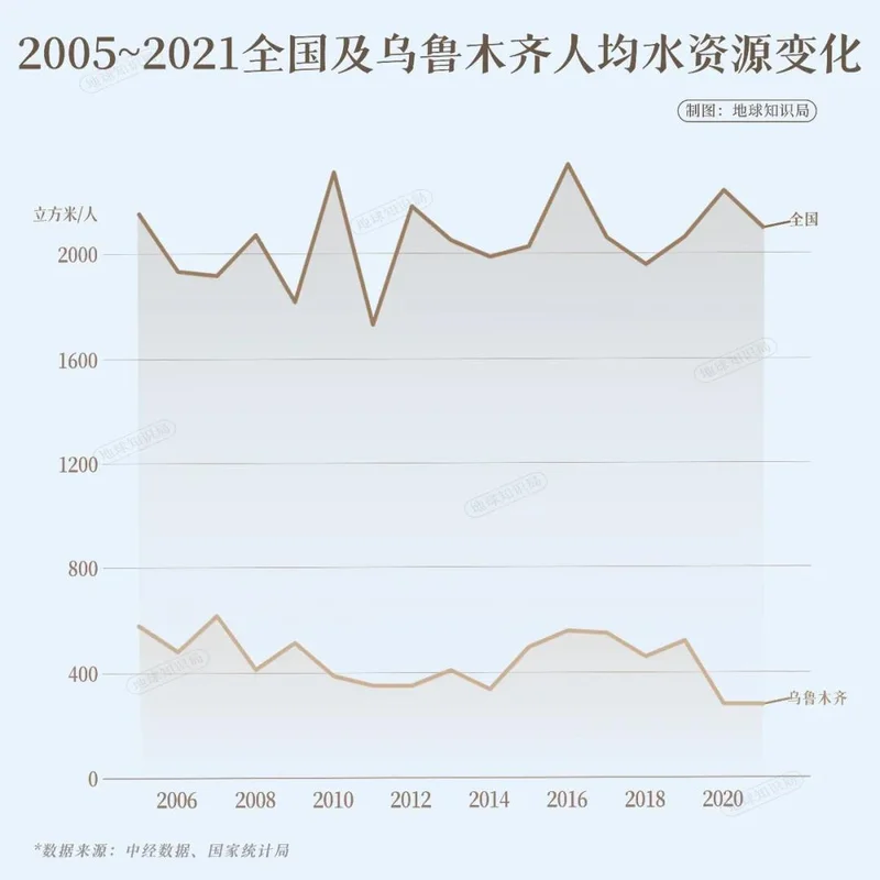 ▲图注:乌市人均水资源量与全国平均水平相去甚远