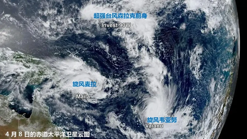 更罕见的是,西太平洋赤道附近出现了“赤道三台”现象——南北半球同时生成3个热带气旋。