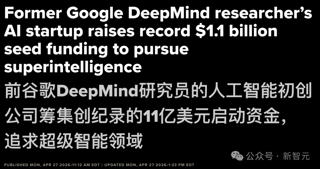 4 月 27 日,前谷歌 DeepMind 顶级研究员、UCL 教授 David Silver 创办的伦敦 AI 实验室 Ineffable Intelligence 宣布完成 11 亿美元种子轮融资,投后估值 51 亿美元。