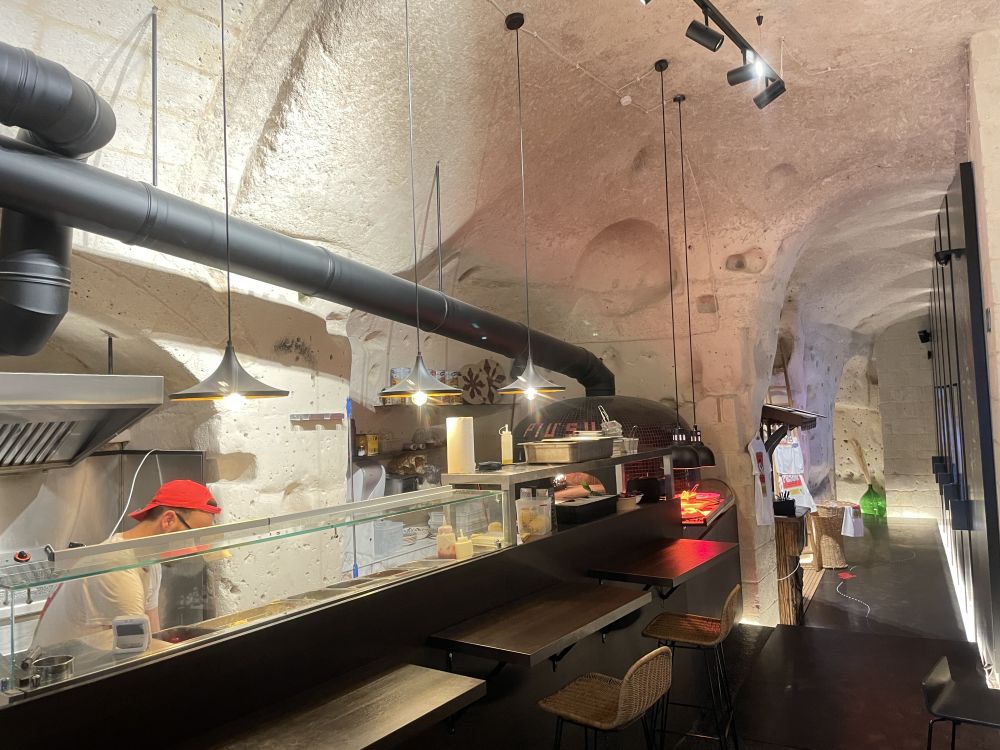 今天住宿马泰拉萨西石窟区里面的一套石窟房,又在洞窟餐厅吃披萨,做一回山洞人Caveman。
