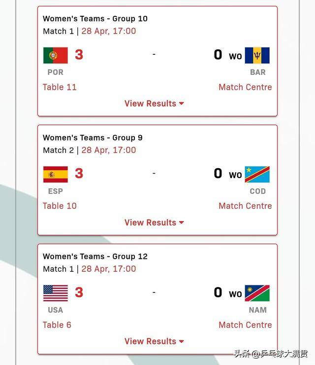 女团小组赛,葡萄牙与巴巴多斯的比赛,巴巴多斯同样是“WO”。