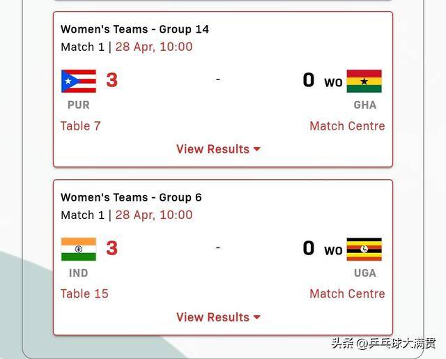 女团小组赛,波多黎各对阵加纳的比赛,加纳被标注了“WO”字样,波多黎各被判定3比0获胜。