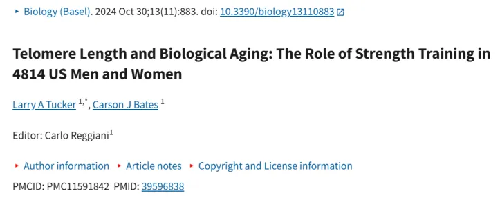 可一项重磅研究颠覆了所有人的认知,《运动医学》期刊发表的论文《Telomere Length and Biological Aging: The Role of Strength Training in 4814 US Men and Women》,依托4814名美国男女的追踪数据证实: