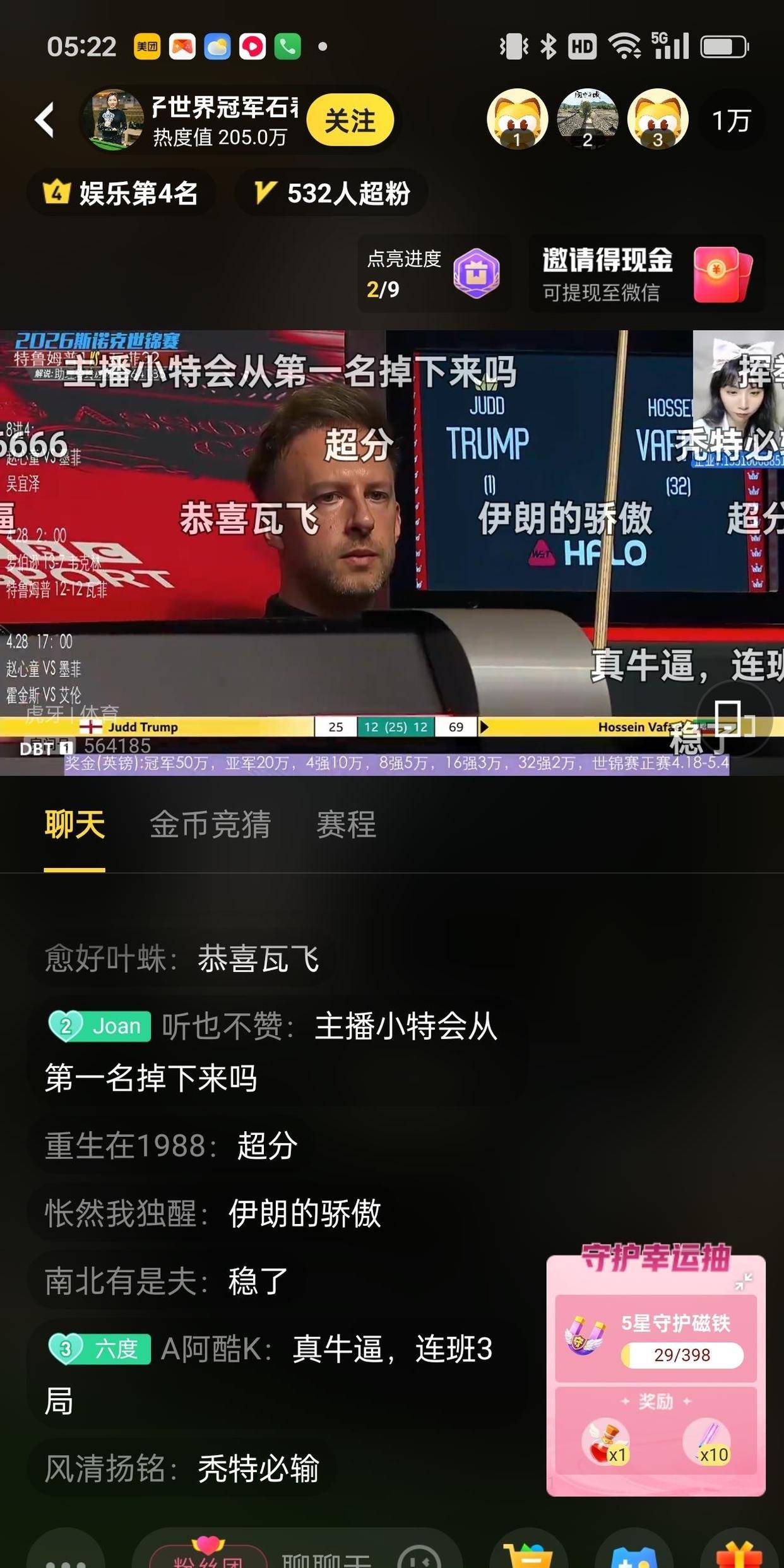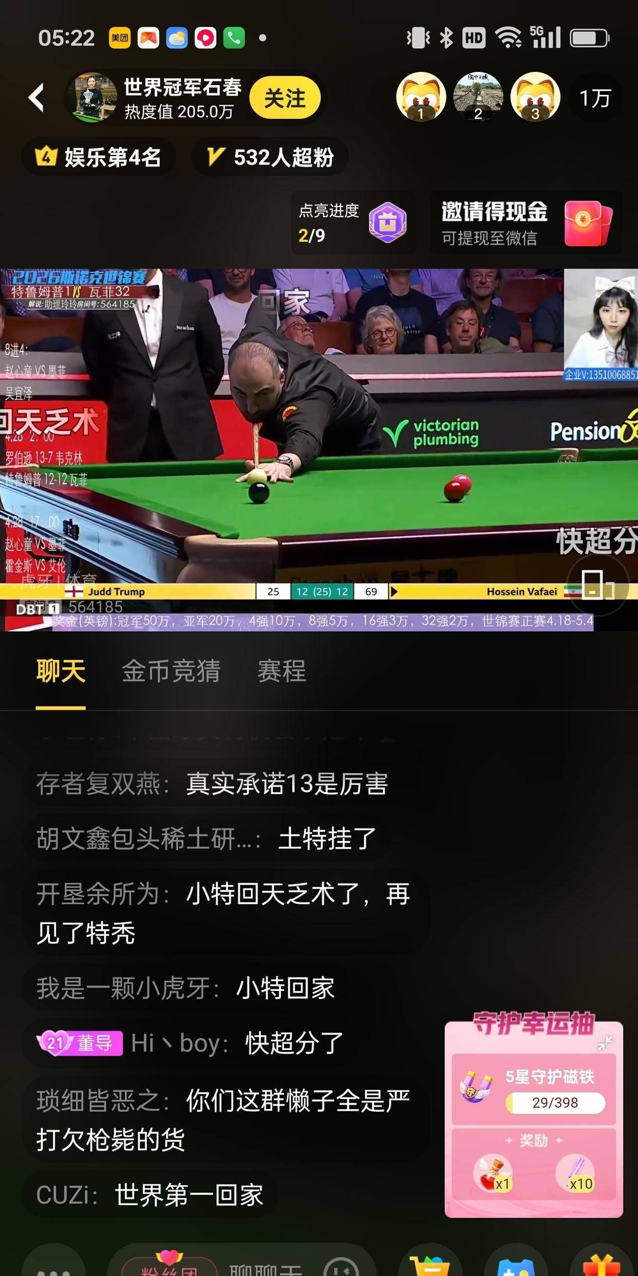 绝佳的机会摆在了特鲁姆普面前,他缓缓起身走到台前,眼神里透着志在必得。稳住呼吸后,小特围绕黑球展开进攻,行云流水的走位让现场观众不禁点头赞叹。他一口气拿到了25分,眼看着局面一片大好,却在击打一颗难度并不大的红球时莫名断掉。或许是考虑到进球线路不够理想,特鲁姆普选择了主动防守,将主动权暂时搁置。