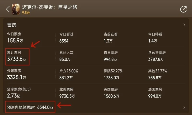 反倒是国外的观众受迈克尔·杰克逊的影响更深,才会愿意为电影买单,仅一周就为影片贡献了14亿票房。