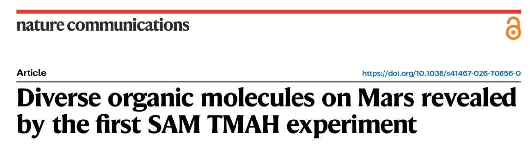 这个困扰人类百年的问题,在 2026 年 4 月终于迎来了一项突破性进展。发表在 Nature Communications 上的一项最新研究显示,NASA“好奇号”火星车在一块约 35 亿年前形成的岩石中,一次性检测出了超过 20 种有机分子。其中有 7 种是分子是首次发现。