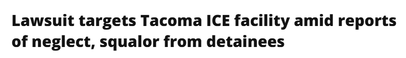 在塔科马设施的被拘留者投诉中,州政府官员称存在普遍忽视情况,包括食品被污染、卫生条件恶劣以及医疗护理不足。