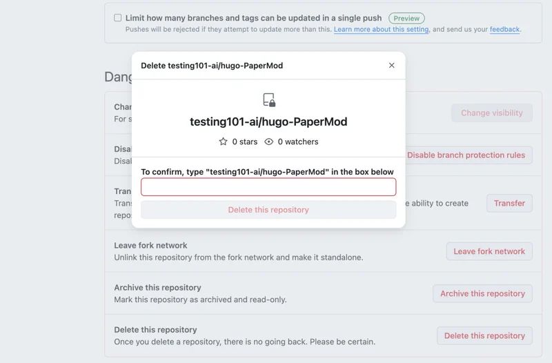 例如删除 GitHub 仓库时,需要手动输入仓库名字以确认是否删除