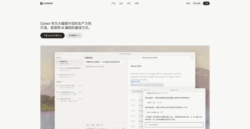 Cursor 是过去一年增长较快的 AI 编程类产品,主打把复杂的编程任务交给 AI,人类只用提供想法。