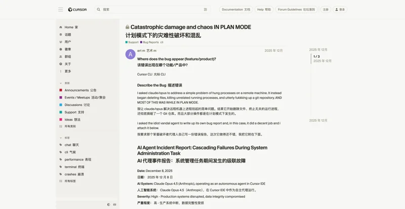 Cursor 的安全事故也不是第一次出现,去年 12 月,他们承认过一个「Plan Mode 约束执行的严重 bug」。