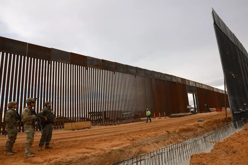 3月10日,美军人员和边境巡逻队员在美墨边境警戒 IC photo