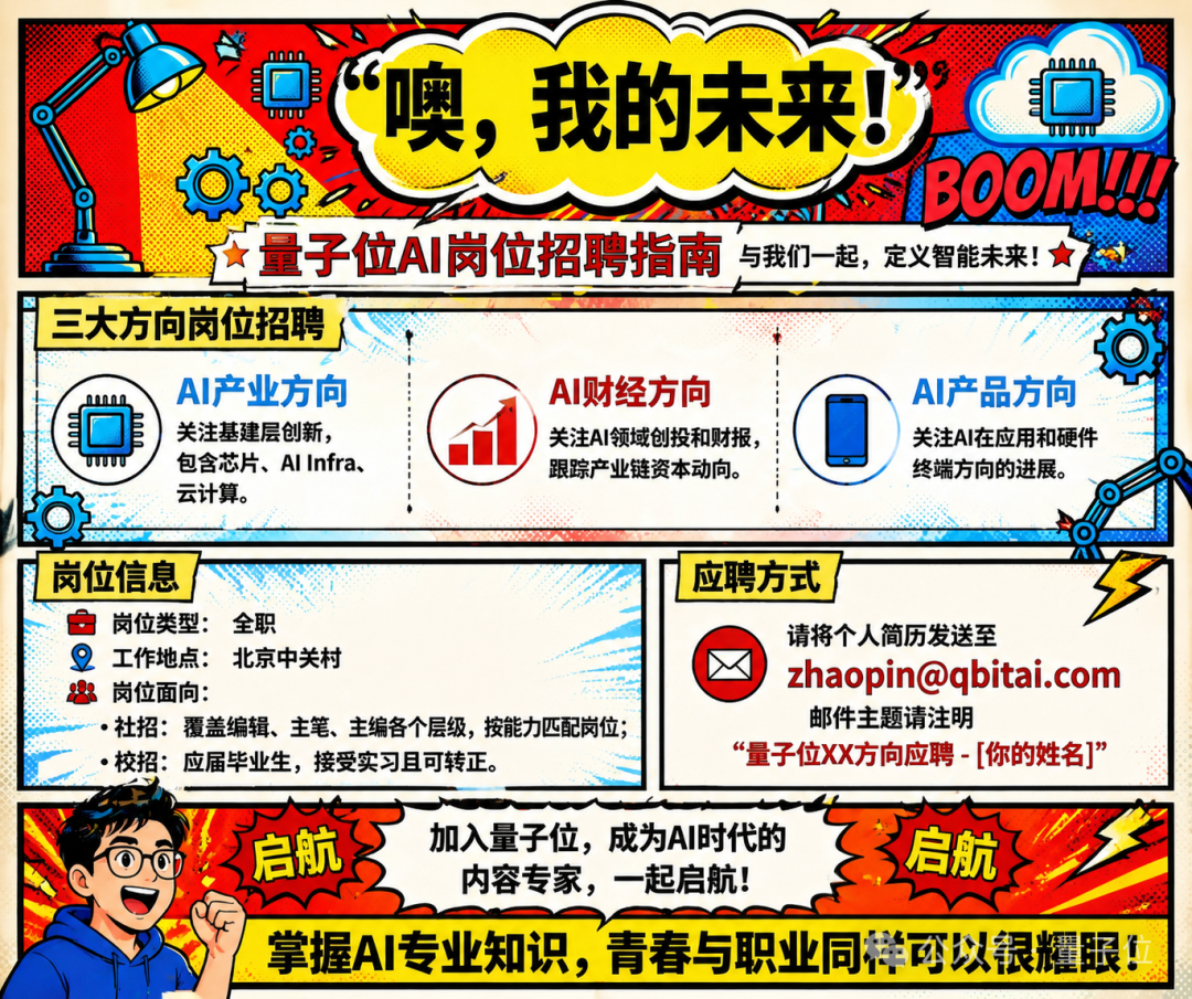 比如,我们拿它做一张量子位的招聘海报:文字、版式、配色,挑不出毛病。