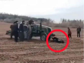 近日网上传出一段视频显示,在疑似中国东北的农田里,一名男子开著大型农用拖拉机作业,几名中共公安试图上前拦截阻止。