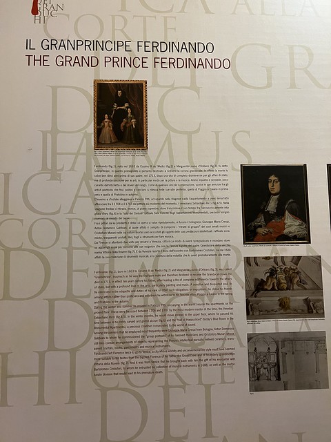 下面这个展板简单地介绍了介绍了费迪南多大王子(Ferdinando de' Medici)的个人特质、生活方式以及他与艺术家的关系。