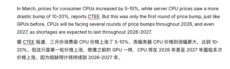 就看起来和显卡八杆子打不着的 CPU,都要开始涨价了。