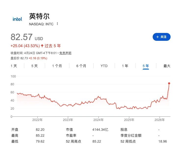 就连前段时间各种动荡,一直成绩低迷被人看不起的英特尔,股价也是迎来了一波猛涨。
