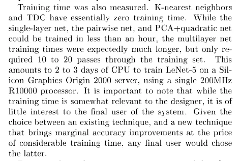 1998 年,图灵奖得主 LeCun 在一篇论文中就提到,他们当时要训练一个 CNN 模型的话,得在单个 CPU 上跑个两三天时间。