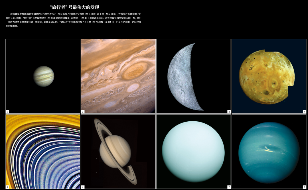 为了让 “旅行者” 号在飞越每颗行星时,都能独立完成观测、分析和记录,尽可能利用好收集到的科学数据,科学家为每艘探测器都配备了 10 台科学仪器,包括测量带电粒子、等离子体波、磁场、宇宙线等多种仪器。这些仪器能帮科学家研究行星磁层、卫星地质以及太阳风与星际介质的相互作用等特性。