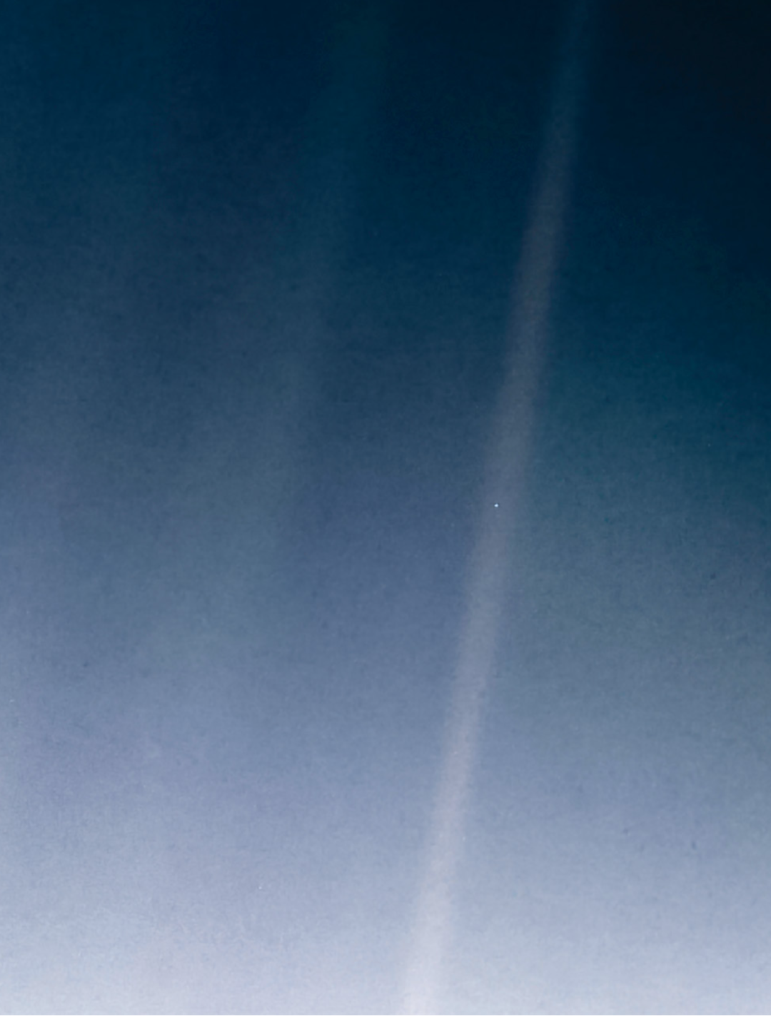 在 “旅行者” 1 号的最后一批照片中,有一张是从 61 亿千米外回首地球时拍下的照片。这就是 “旅行者” 号科学家卡尔・萨根口中的 “暗淡蓝点”。(图片来源 :NASA/JPL-Caltech)