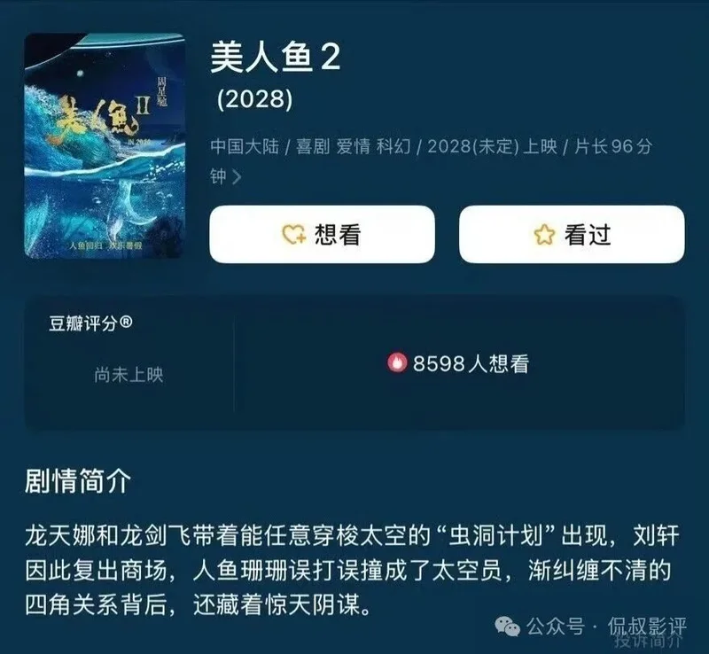 《美人鱼1》有邓超、罗志祥、吴亦凡等顶流艺人撑场,而续作选用的艾伦、常远等演员,虽然有喜剧功底,但缺乏扛票房的国民度,很难撬动路人盘。