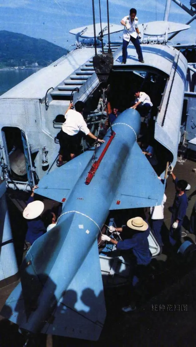 例如早期的冥河类反舰导弹,弹翼是不折叠的,也不考虑弹筒间隙,发射装置异常庞大,也很笨重。排水量1500吨的053护卫舰只能携带4枚上游导弹,排水量3800吨的051驱逐舰只能带6枚“海鹰”。