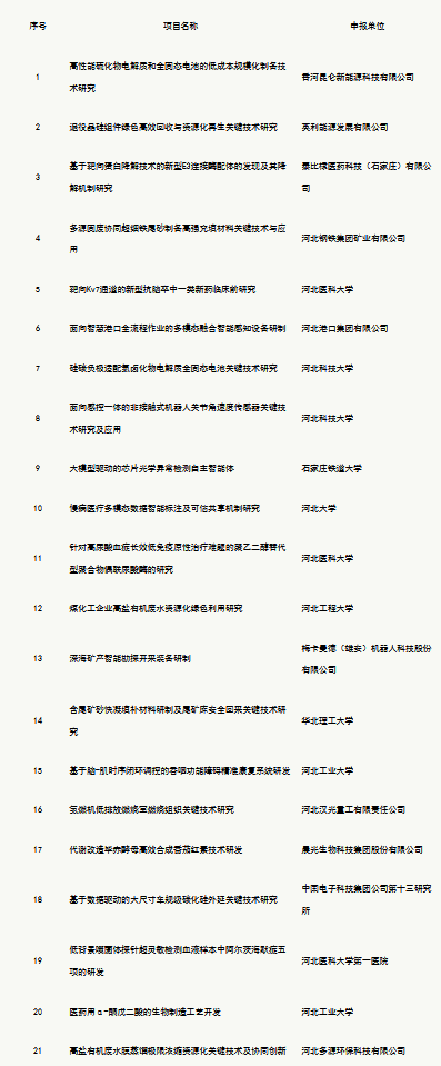 河北省科学技术厅关于拟立项2026年度京津冀协同创新专项项目的公示