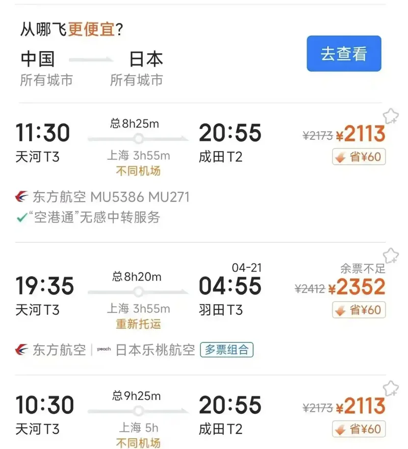 一是选择中转航班。经首尔或香港等地转机赴日,票价通常较直飞低20%-30%。五一期间,北京经首尔至东京的机票价格约在2200-2800元,较直飞可节省约1000元。香港至日本航线航班较为密集,票价也相对稳定,经香港转机的总花费约在2500-3000元。