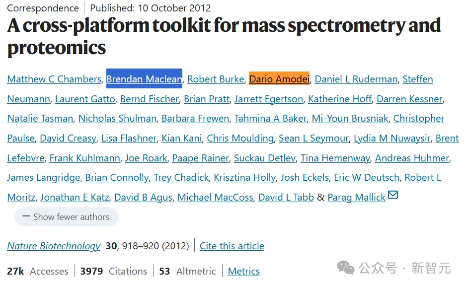 Anthropic联合创始人Dario Amodei曾经是MacCoss Lab的成员,2012年还和Brendan合著过一篇Nature Biotechnology的论文。