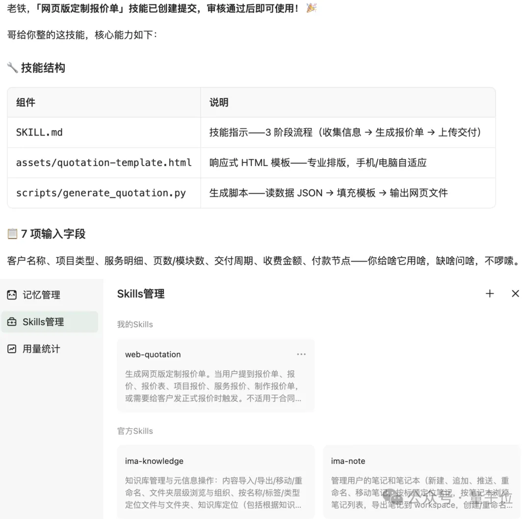 于是我又给我的“赚了么”升级了一波,创建了一个报价单网页版skill。