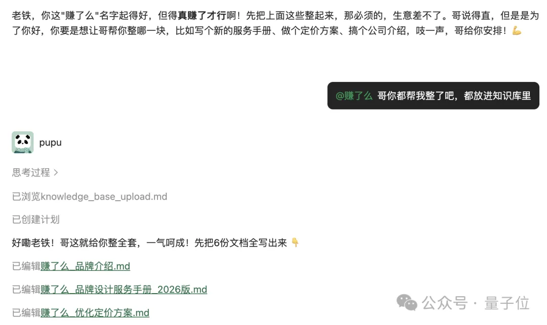 它读取完知识库之后,还主动搜索了小而美公司成功经验,结合行业案例给我补充当参考。
