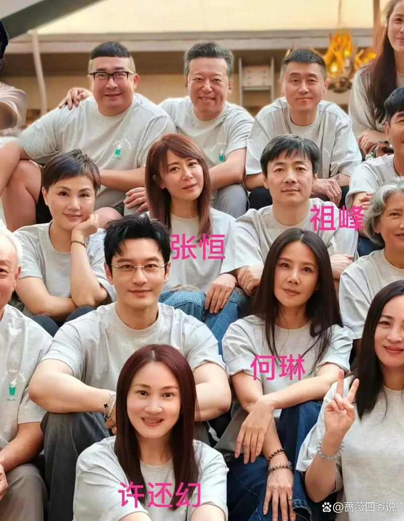 在这张合影里,黄晓明戴着金丝眼镜很清爽,祖峰头发有些白了,但是依旧帅气。坐在祖峰身边的是演《还珠格格》里塞娅公主的张恒,她没变,还是能一眼就认出她。坐在黄晓明身边的是何琳,她老的有些明显,没有年轻时好看了。许还幻笑起来还是那么灿烂,她曾在电视剧《像雾像雨又像风》中饰演陆毅的表妹。